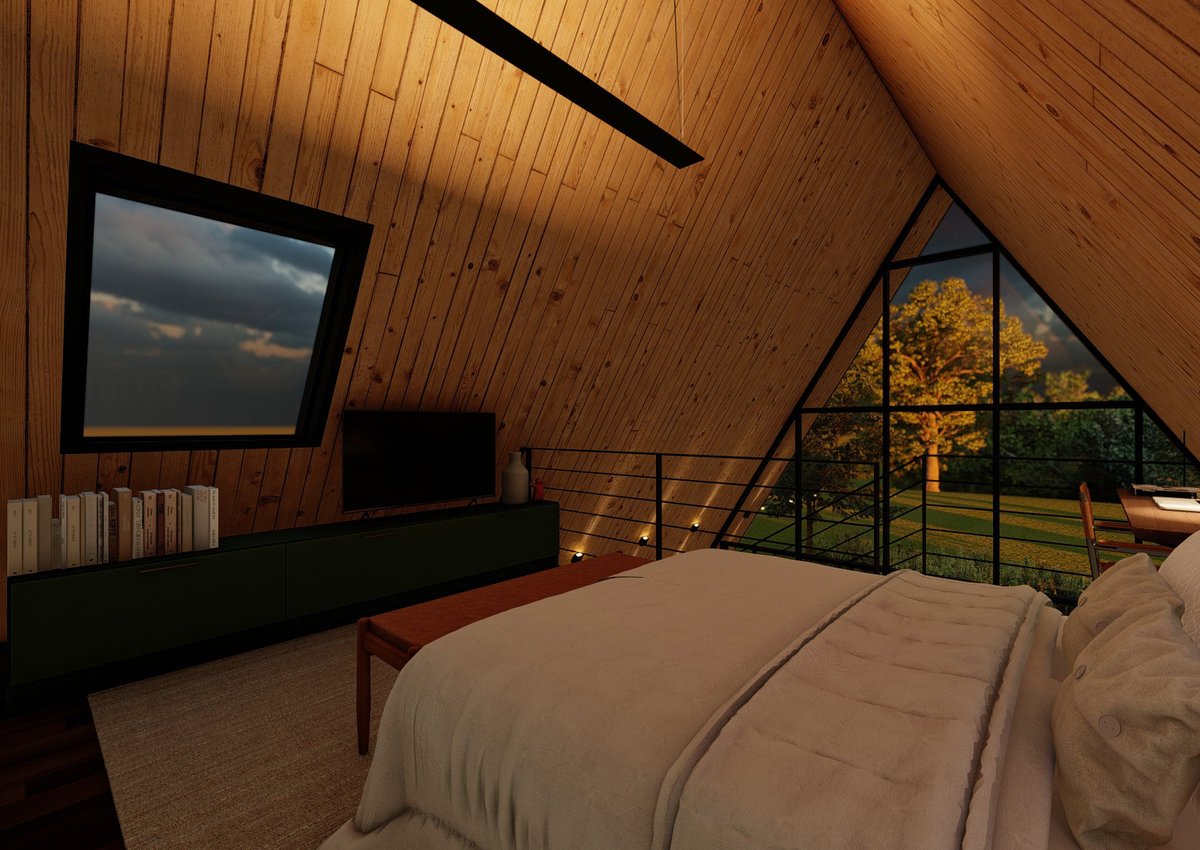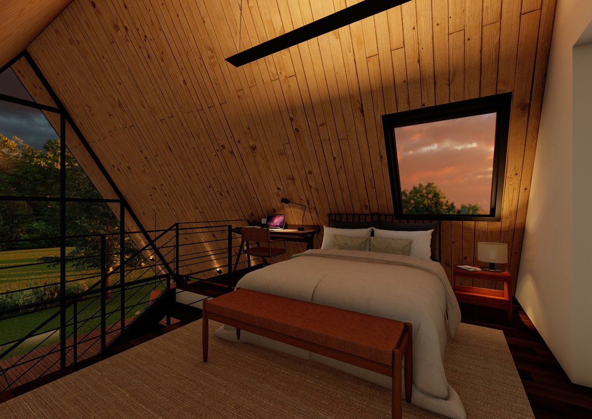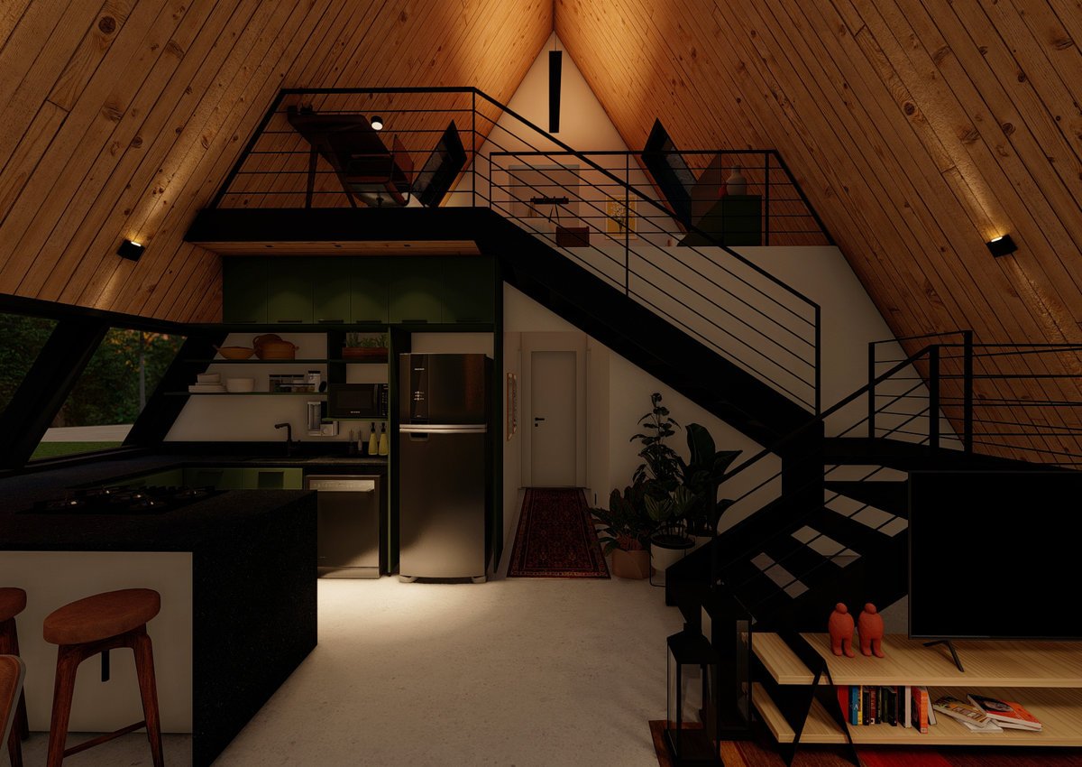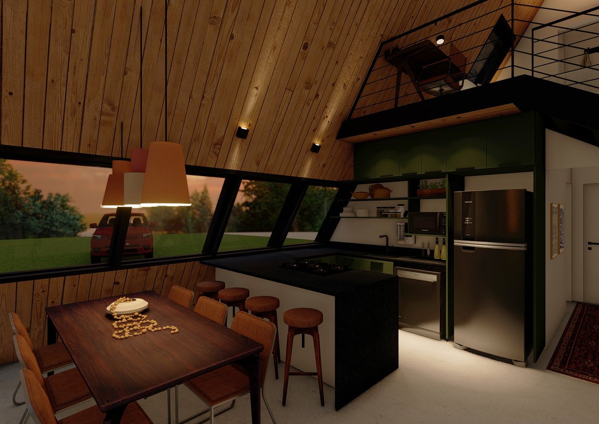 A proposta para o projeto do chalé era criar um lugar aconchegante, com uma arquitetura que valoriza o aproveitamento inteligente dos espaços, garantindo funcionalidade sem abrir mão da estética. Além disso, a forte conexão com o entorno, permite que a natureza faça parte da experiência de morar, resultando em um refúgio harmônico.